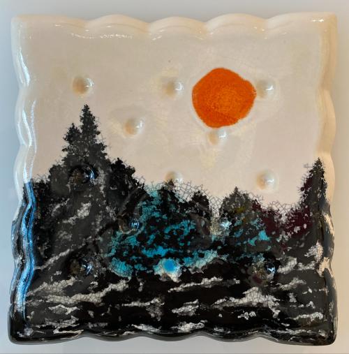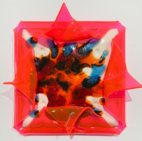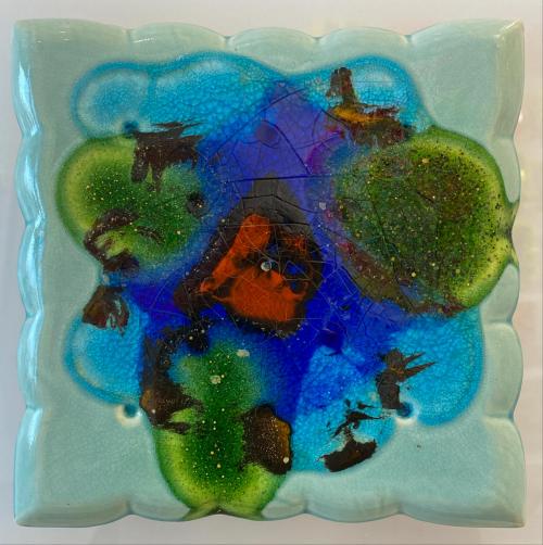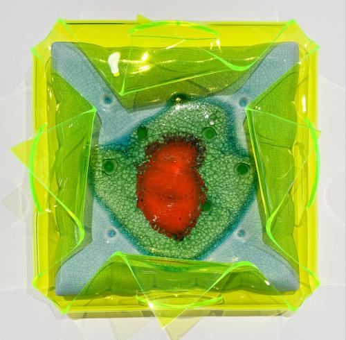 라이언조23.0x23.0(cm) (3호)Glaze, glass on ceramic with fluorescent acrylic, 2025