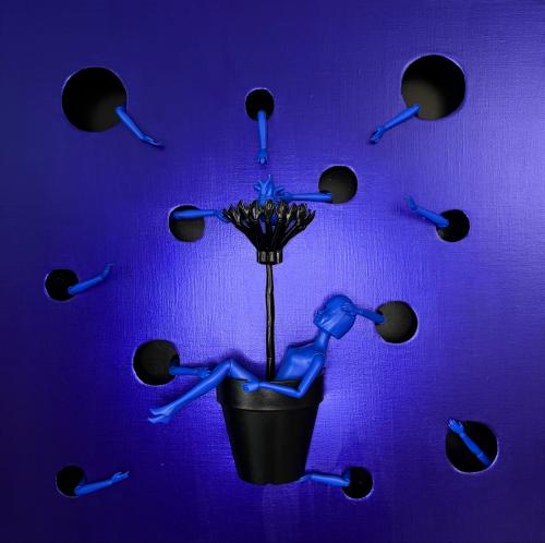 작가는 사람의 형태에 가장 가까운 바비인형을 주된 재료로 쓴다.
